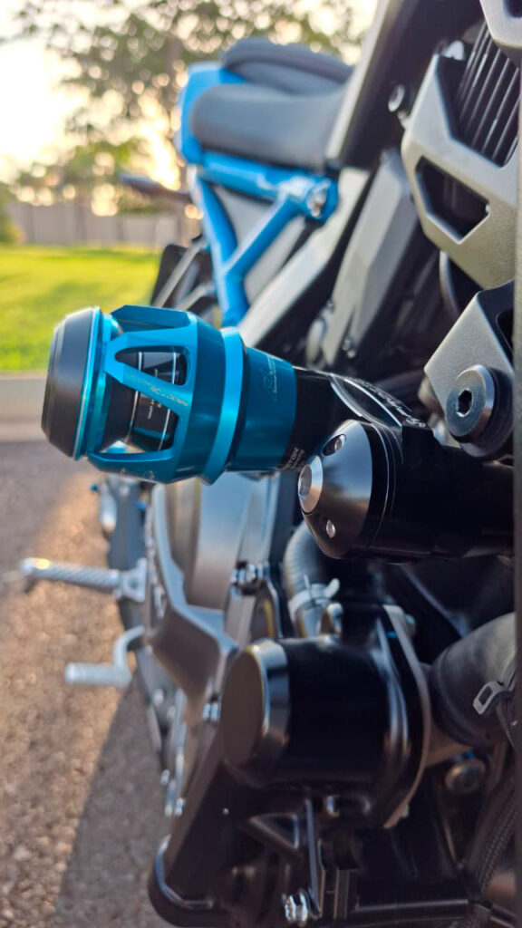 Além da proteção, os sliders, especialmente os modelos com acabamento refinado como os das linhas S1 e F1, trazem um visual esportivo, moderno e alinhado ao design da moto.